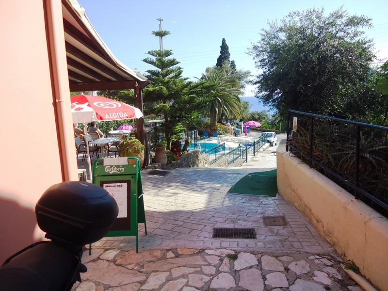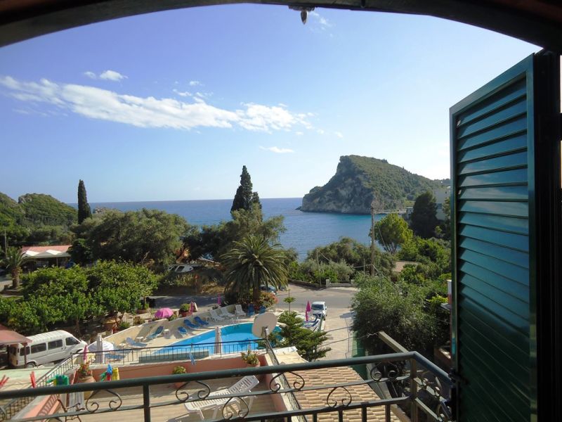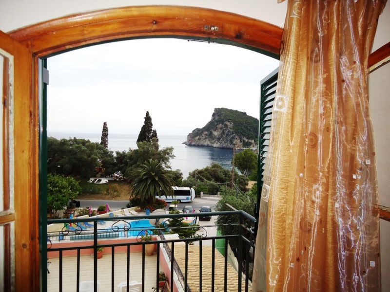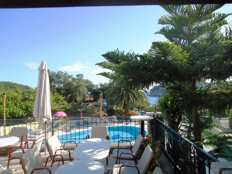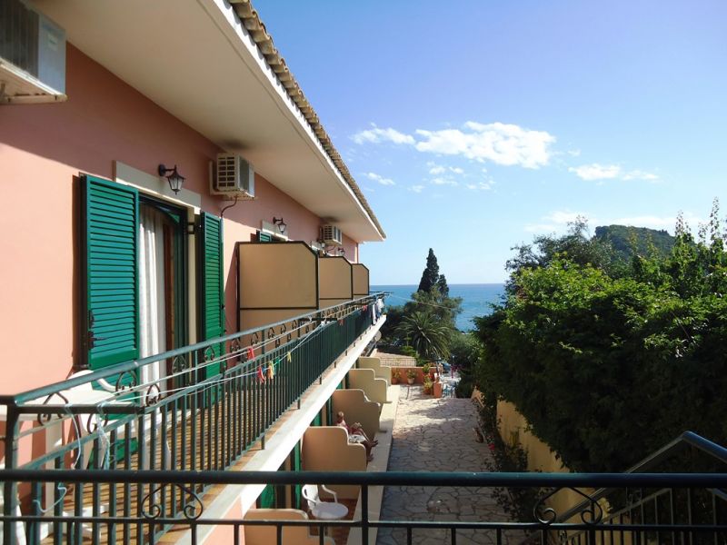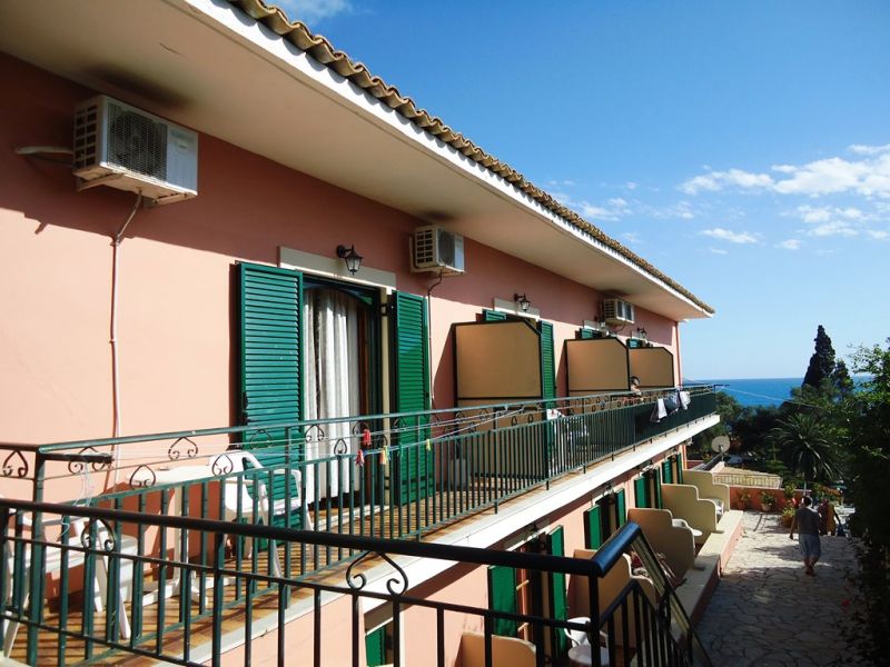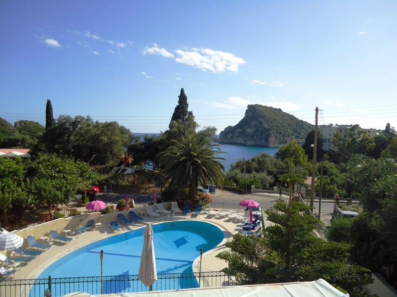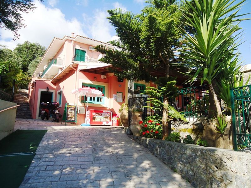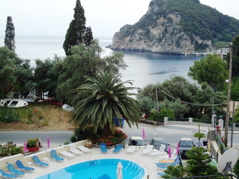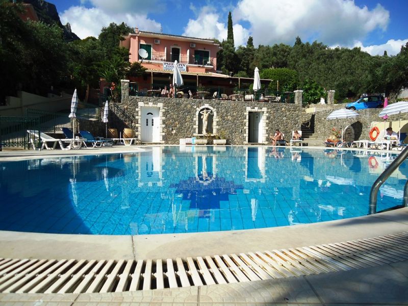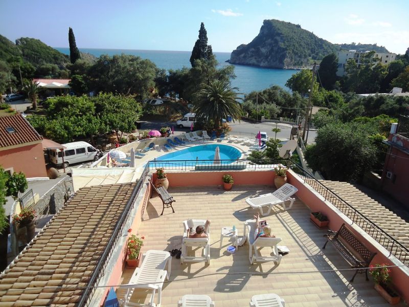 This small, family run studios is located within a short walk from the beach. It offers a reception/bar area and a large sun terrace overlooking the bay of Paleokastritsa. A garden area with lemon trees and a good-sized pool with poolside area, sun loungers, and umbrellas are surrounding the property. Paleo Inn offers 20 rooms with private bathroom and a refrigerator. All rooms have private balconies or patios.
